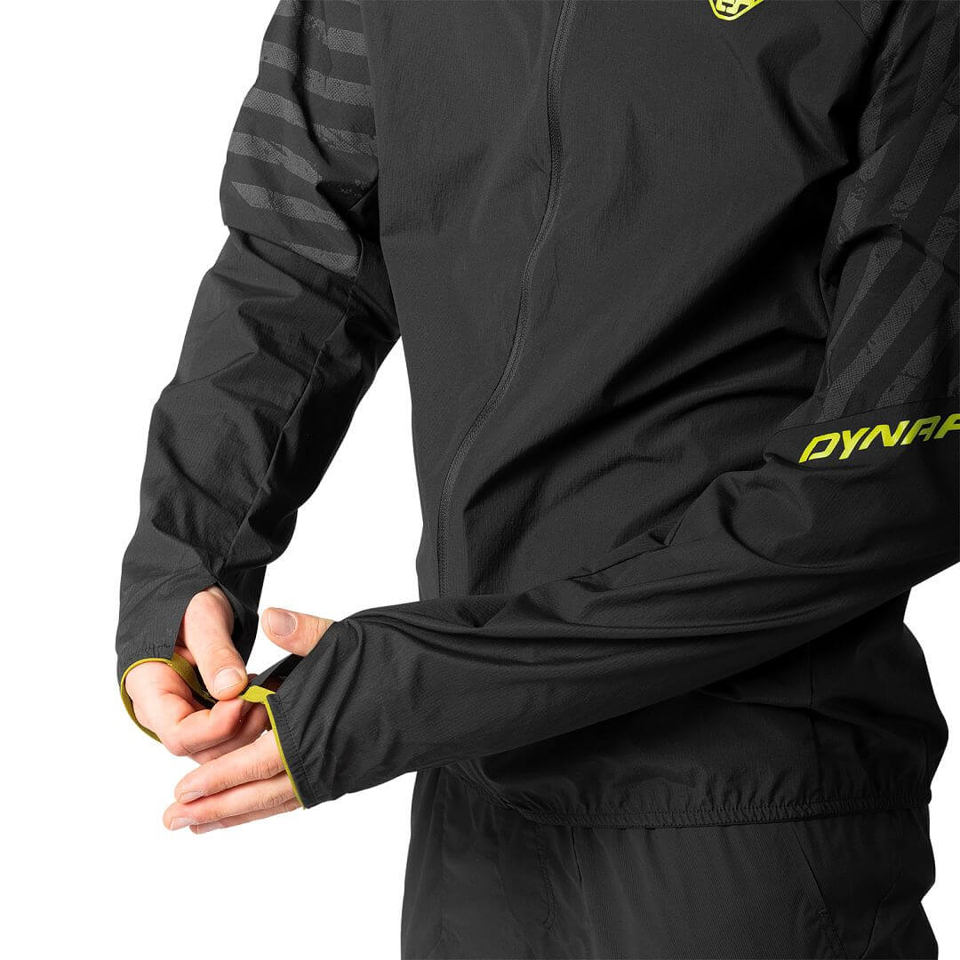 Dynafit Trail Reflective Wind JKT M black out pánská běžecká reflexní bunda s kapucí otvory na palce