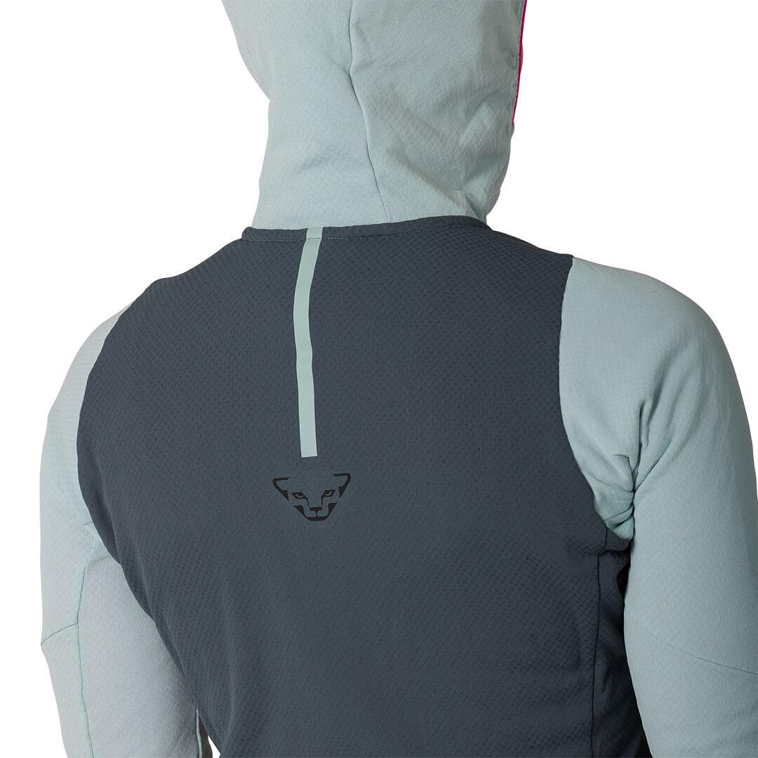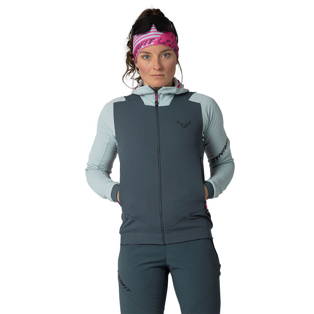 Dámská celorozepínací mikina s kapucí určená pro zimní skitouring a rychlejší pohyb v horách. Slouží jako střední vrstva, která poskytuje základní tepelný komfort a zároveň velmi dobře odvádí vlhkost, takže je vhodná i při svižném tempu bez přehřívání.
