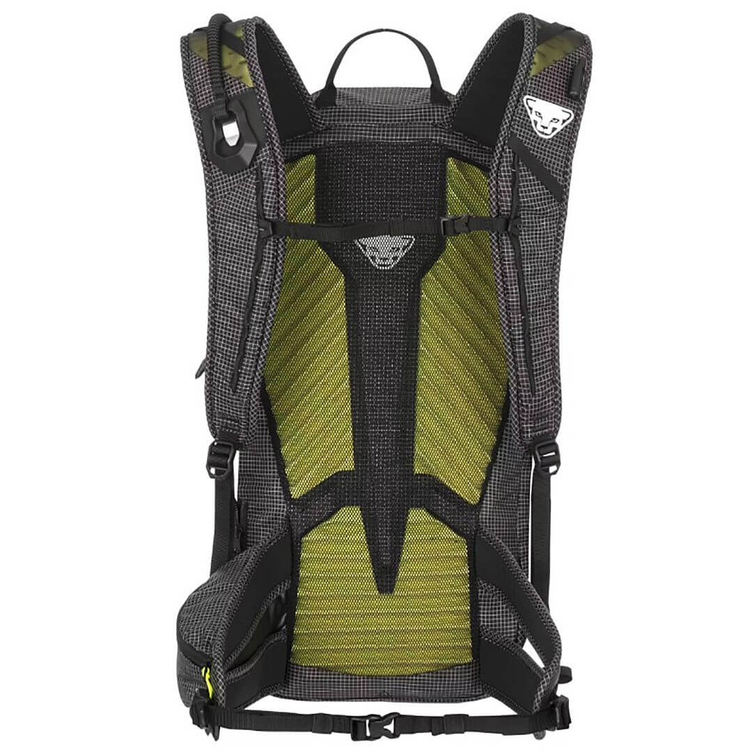Anatomicky tvarovaný zádový panel a ramenní popruhy zajišťují vysoký komfort a dobrou prodyšnost i při intenzivním pohybu. Batoh stabilně sedí na zádech při výstupu i sjezdu. Odolný materiál 70/100D Recycled Nylon UHMWPE Gridstop kombinuje nízkou hmotnost s vysokou odolností proti oděru a mechanickému poškození, což z něj dělá ideální volbu pro náročné alpské použití.